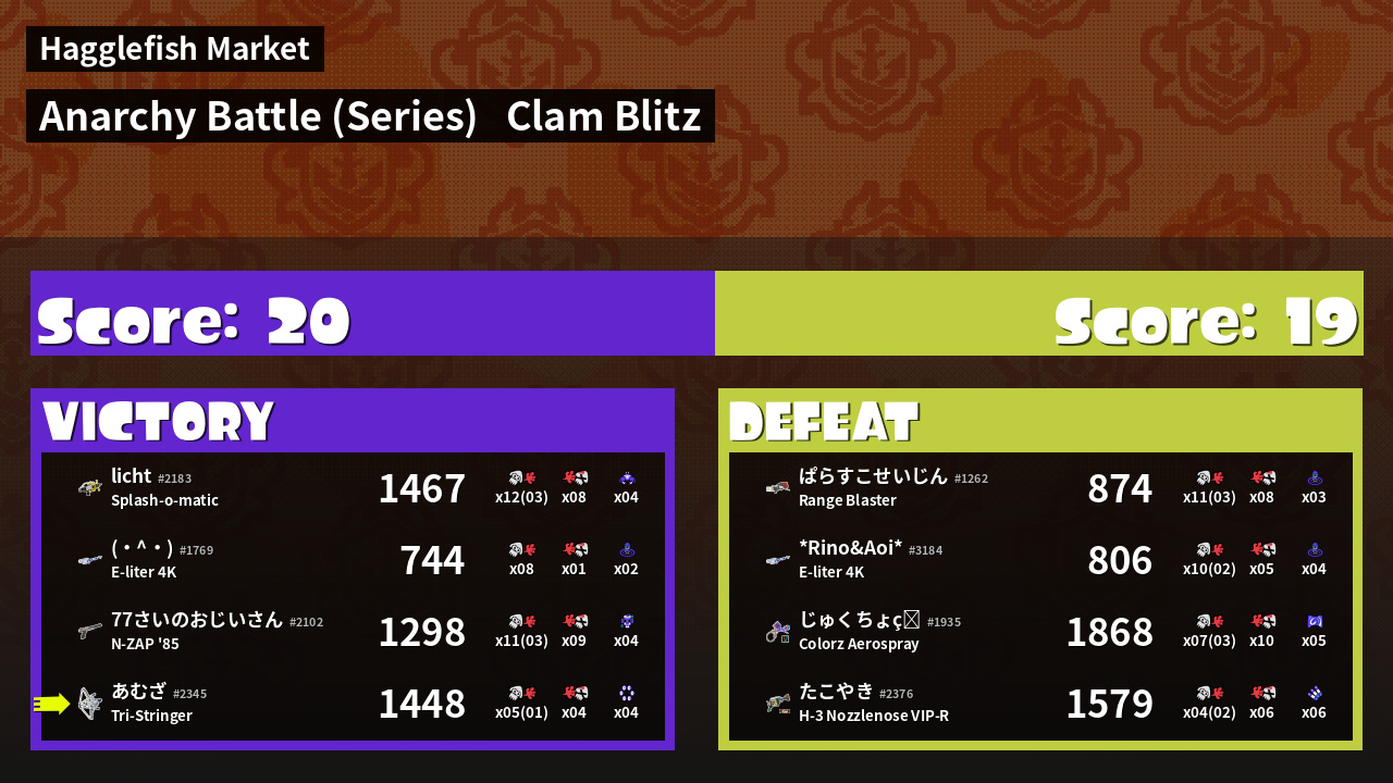 | Mode | Clam Blitz - Anarchy Battle (Series) | ||