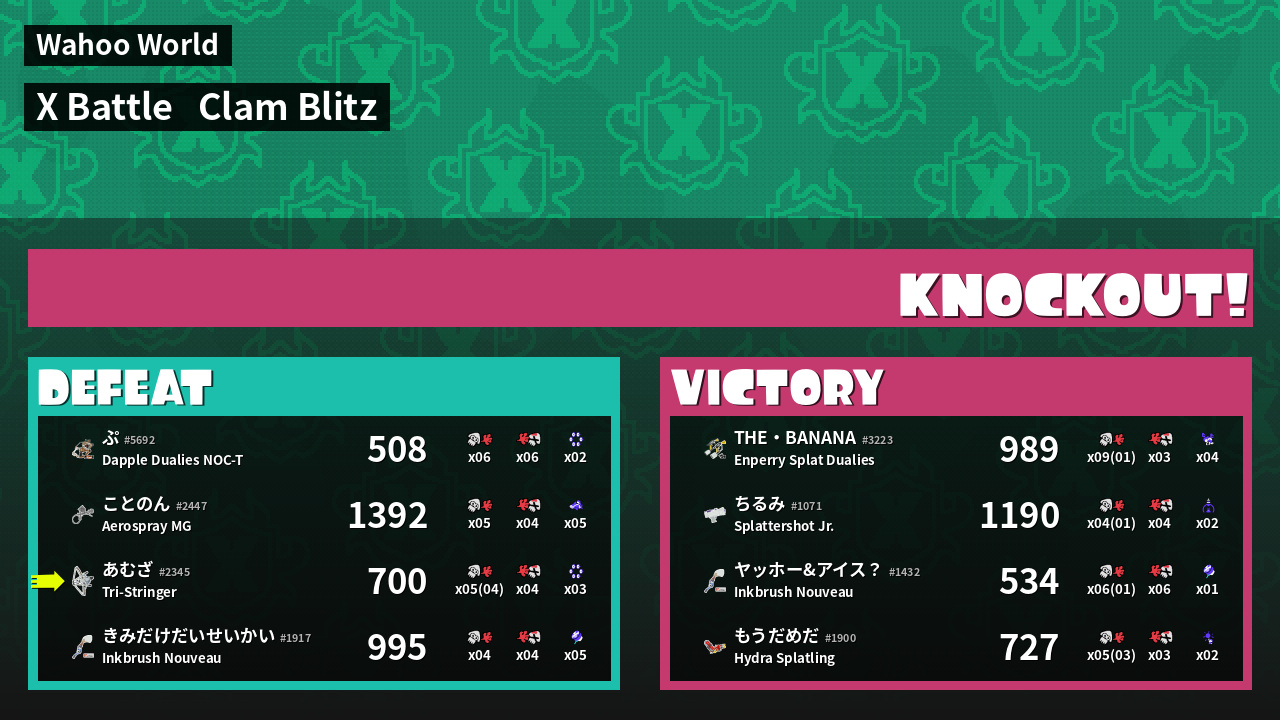 | Medals | #1 Clam Carrier #1 Splat Assister #2 Overall Splatter | ||