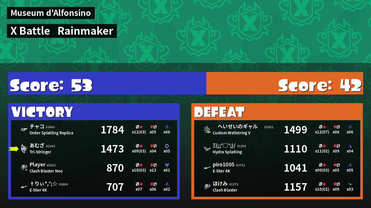| Mode | Rainmaker - X Battle | ||