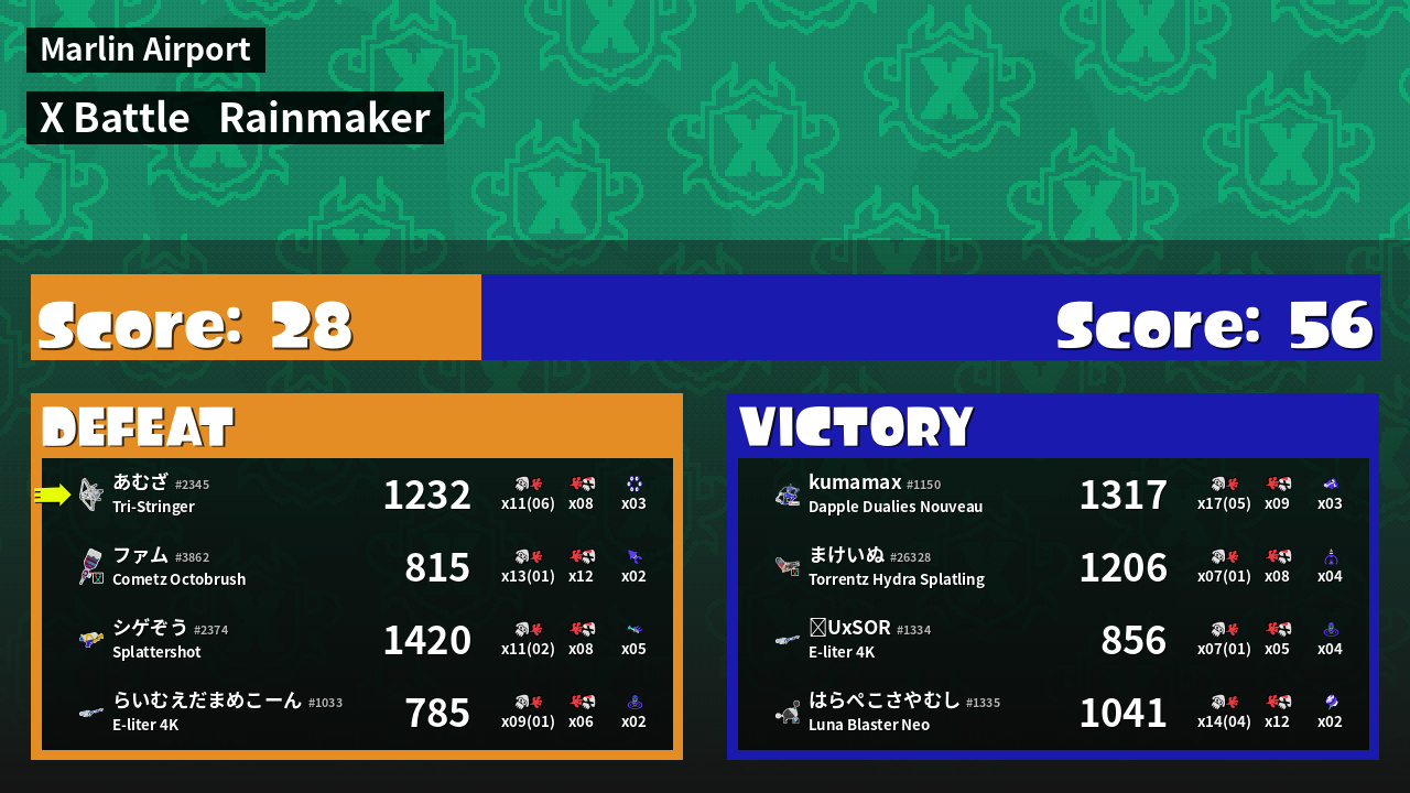 | Mode | Rainmaker - X Battle | ||