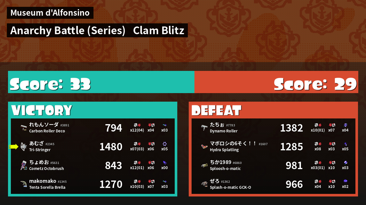 | Mode | Clam Blitz - Anarchy Battle (Series) | ||