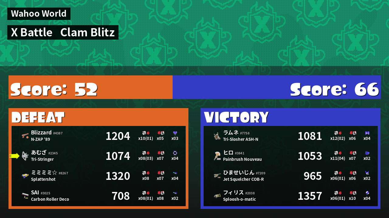 | Medals | #1 Clam Carrier #1 Splat Assister #1 Clam Stopper | ||
