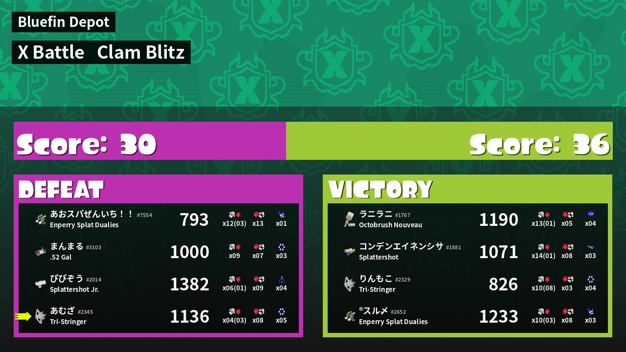 | Medals | #1 Clam Carrier #1 Splat Assister #2 Turf Inker | ||