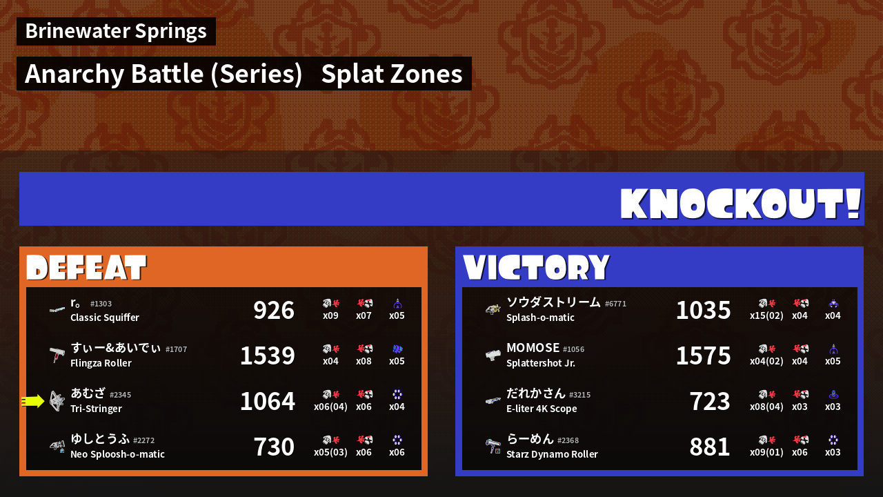 | Mode | Splat Zones - Anarchy Battle (Series) | ||