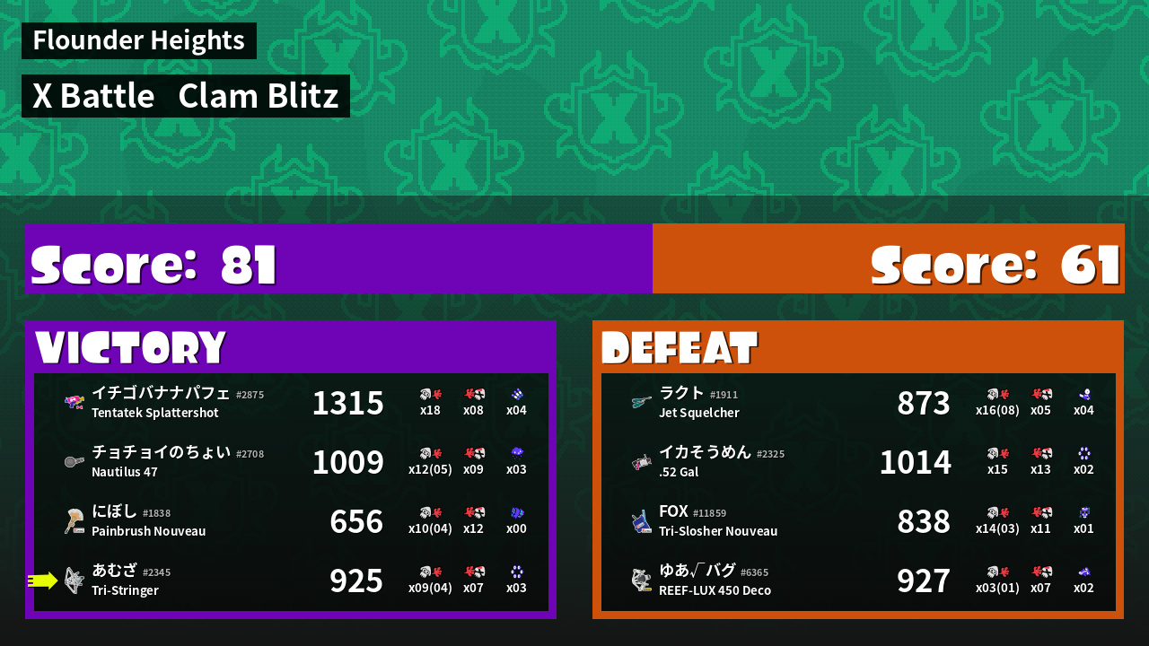 | Medals | #1 Score Booster #1 Killer Wail 5.1 User #2 Clam Carrier | ||