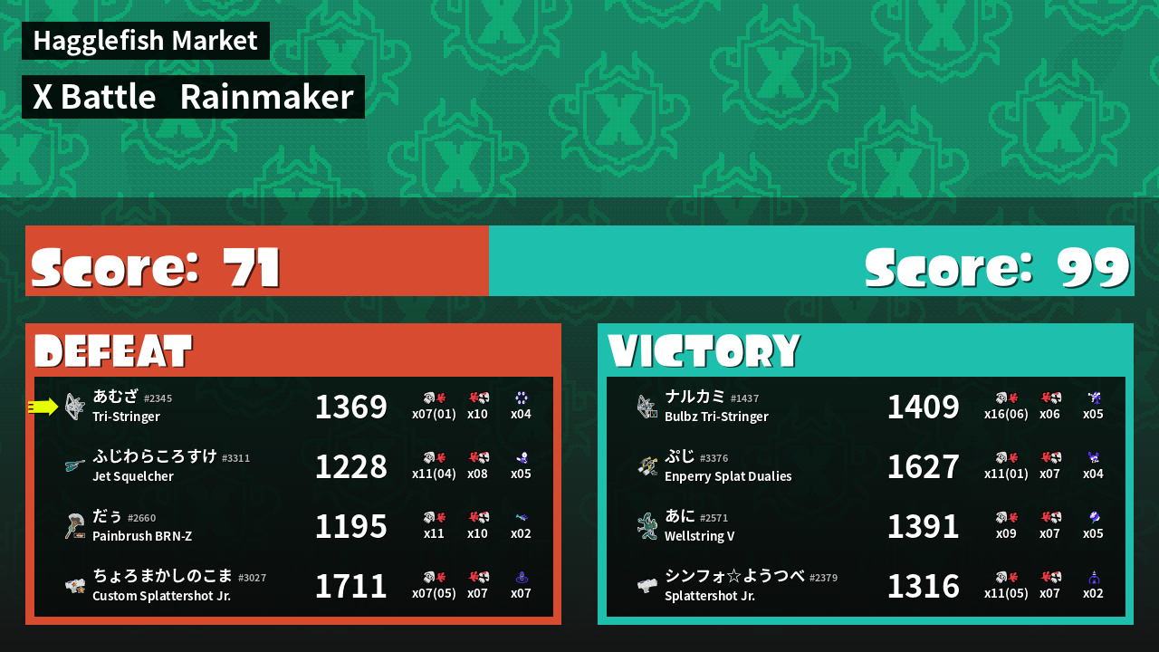 | Mode | Rainmaker - X Battle | ||