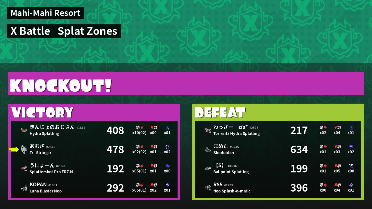 | Mode | Splat Zones - X Battle | ||