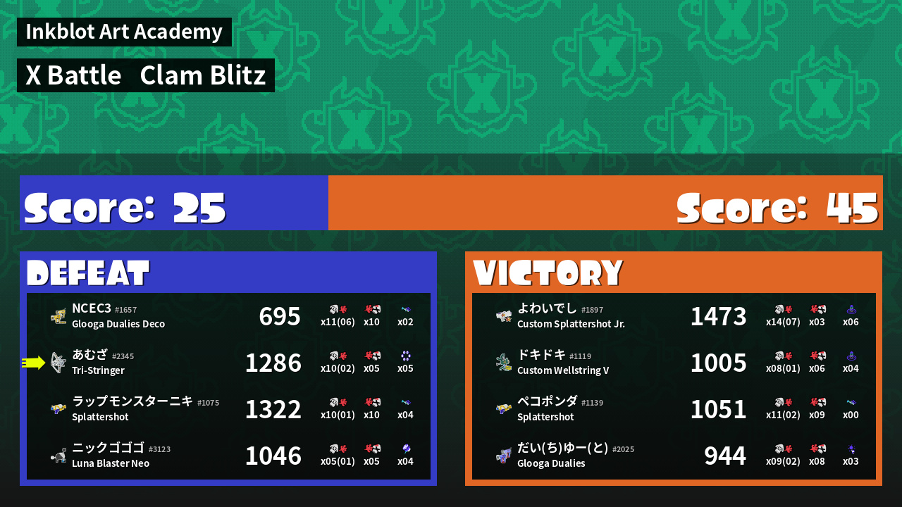 | Medals | #1 Clam Carrier #1 Popular Target #1 Clam Stopper | ||