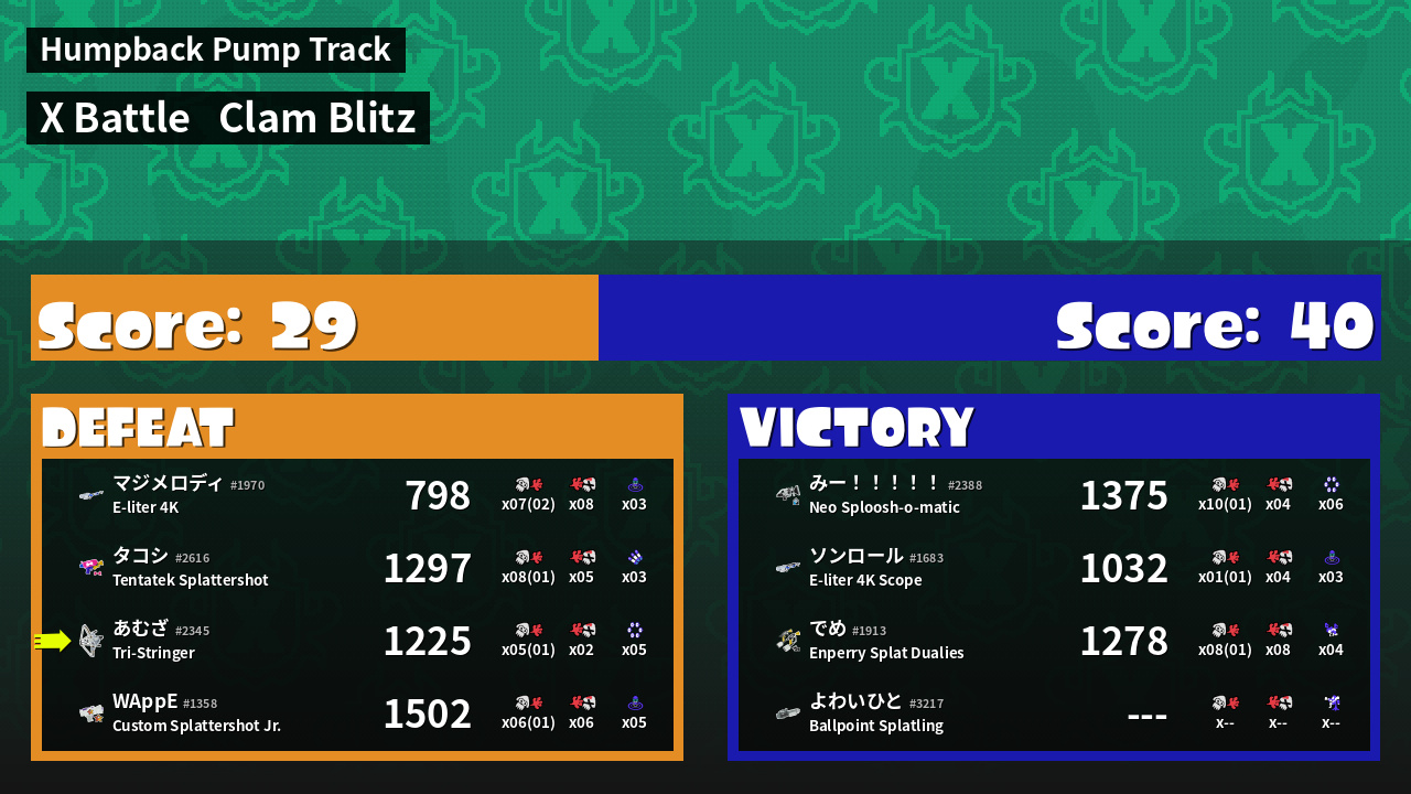 | Medals | #1 Score Booster #1 Clam Carrier #1 Damage Taker | ||