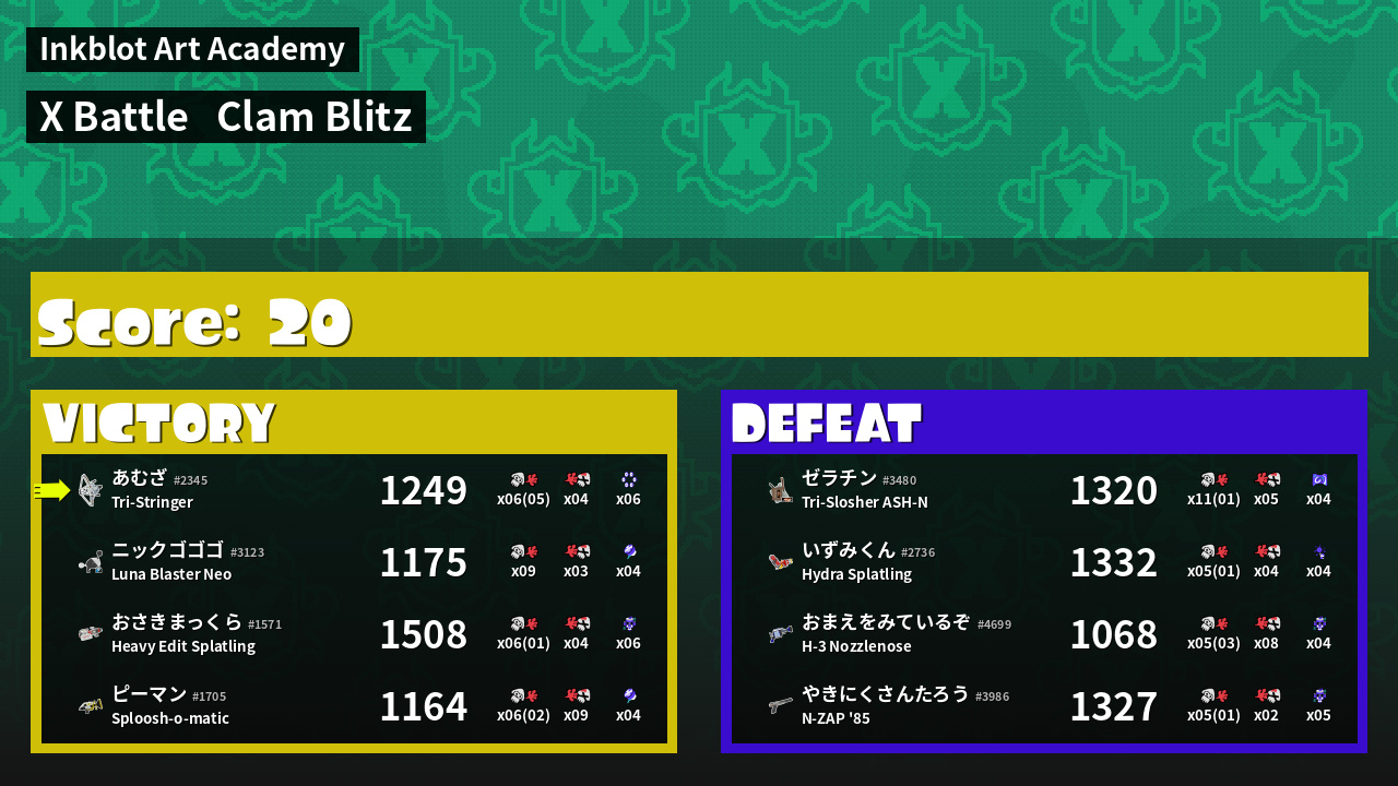 | Mode | Clam Blitz - X Battle | ||
