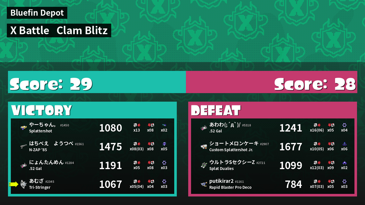 | Medals | #1 Clam Carrier #1 Splat Assister | ||