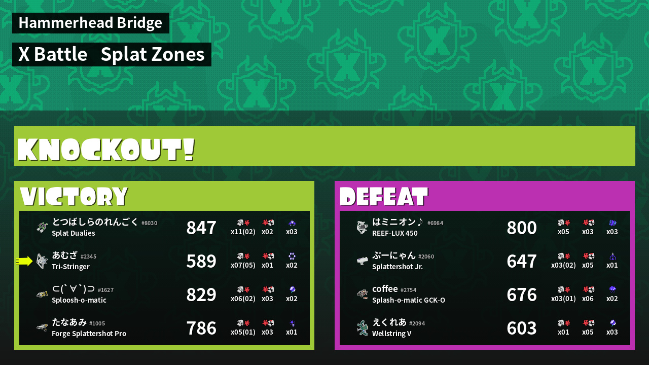 | Mode | Splat Zones - X Battle | ||
