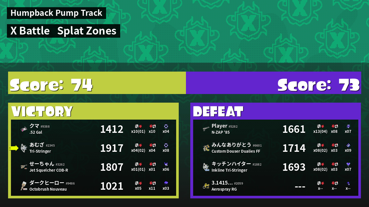 | Medals | #1 Splat Zone Inker #1 Turf Inker #1 Popular Target | ||