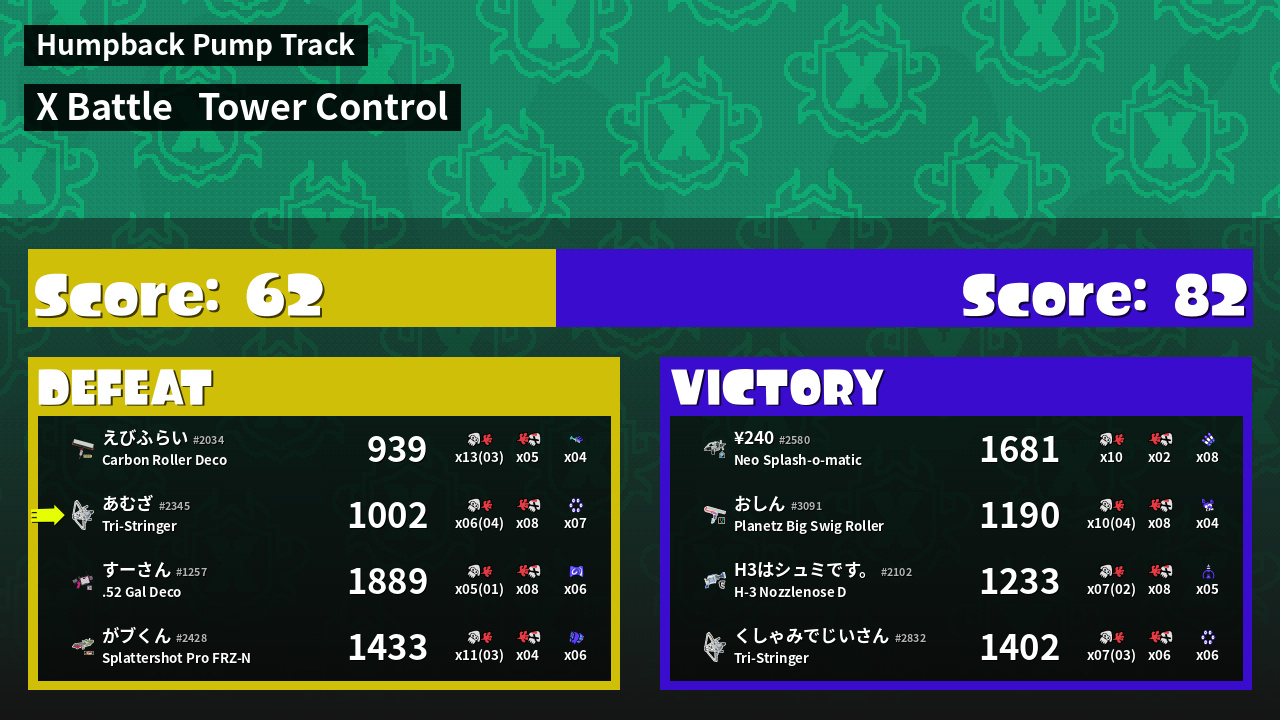 | Medals | #1 Score Booster #1 Splat Assister #1 Checkpoint Breaker | ||