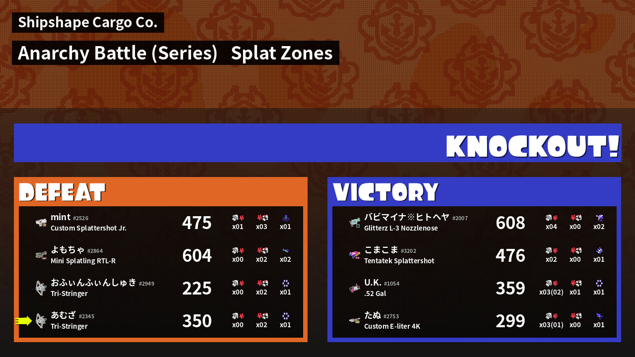 | Mode | Splat Zones - Anarchy Battle (Series) | ||