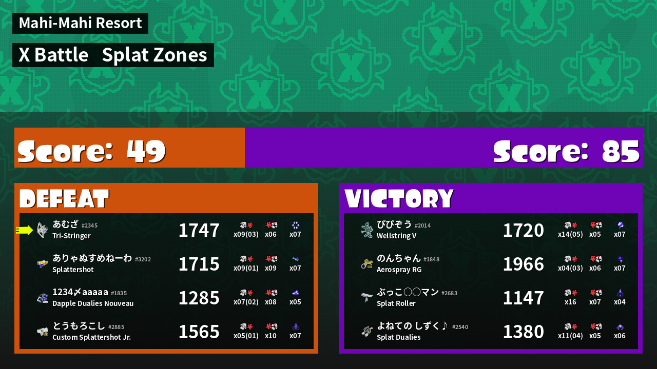 | Mode | Splat Zones - X Battle | ||