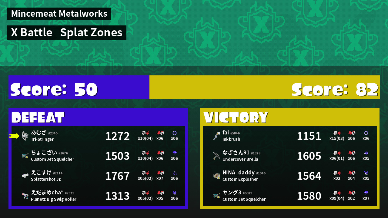 | Medals | #1 Overall Splatter #1 Splat Zone Guard #1 Enemy Splatter | ||