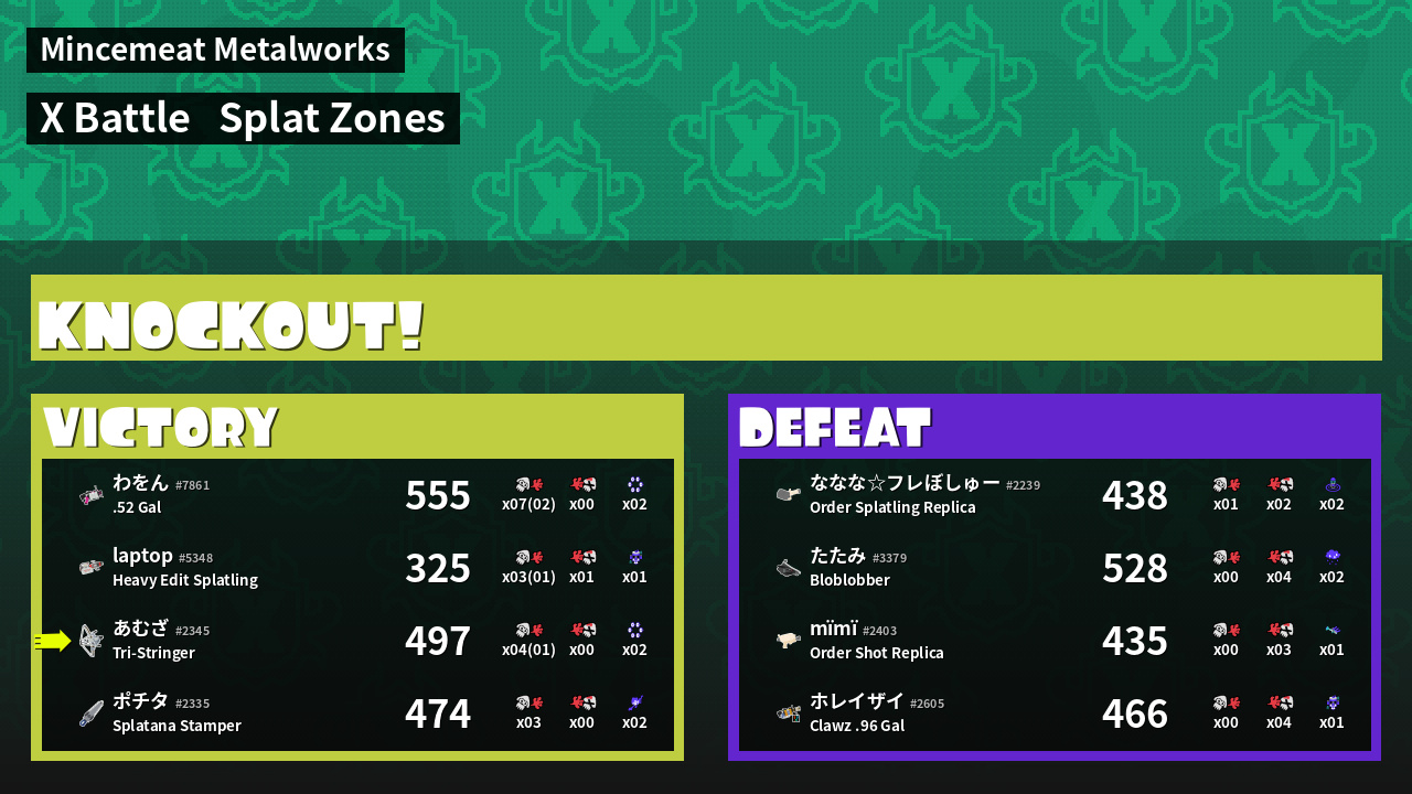 | Mode | Splat Zones - X Battle | ||