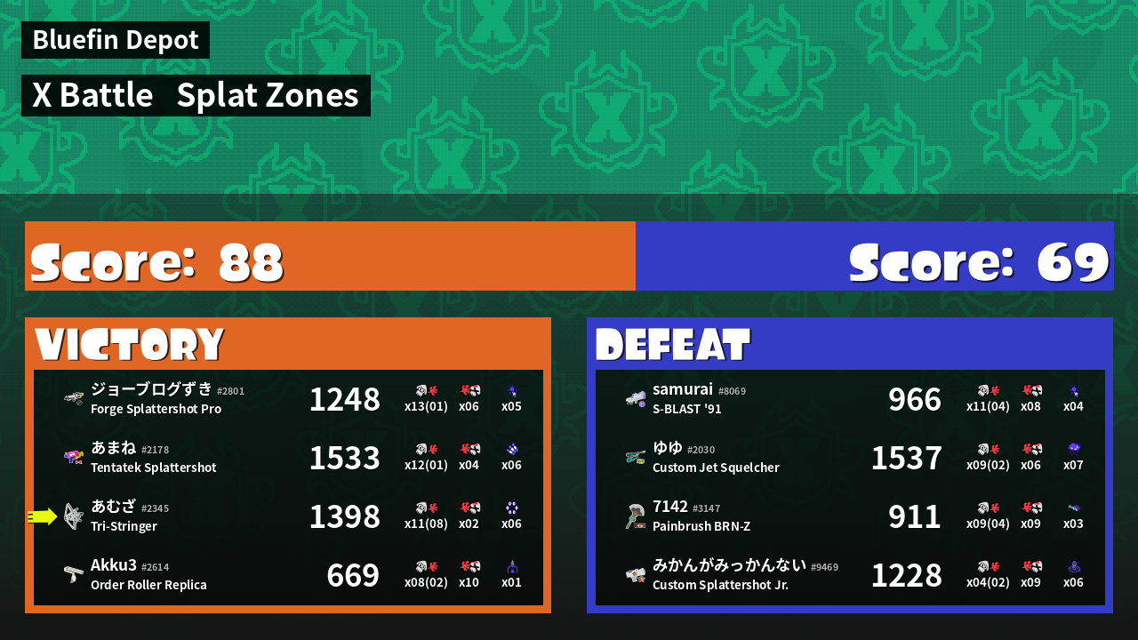 | Medals | #1 Splat Zone Inker #1 Splat Assister First Splat! | ||