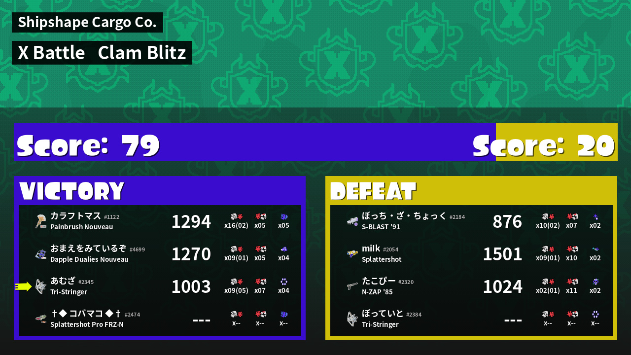 | Mode | Clam Blitz - X Battle | ||