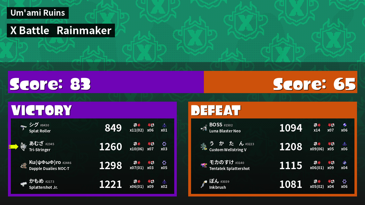 | Medals | #1 Score Booster #1 Popular Target #1 Splat Assister | ||