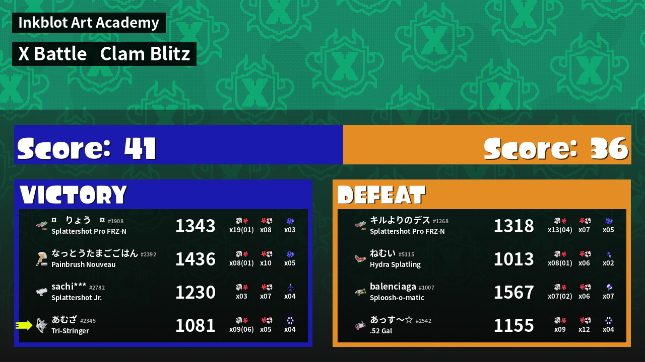 | Medals | #1 Splat Assister #1 Killer Wail 5.1 User #2 Overall Splatter | ||