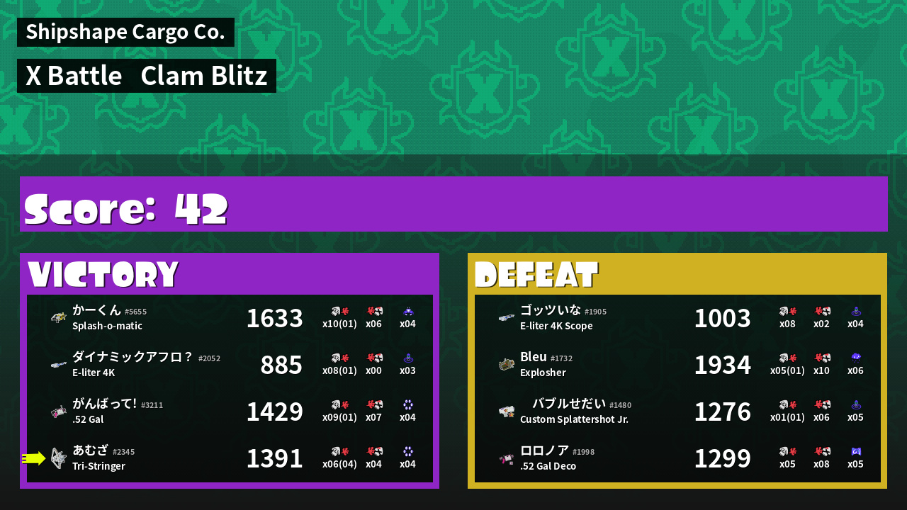 | Medals | #1 Splat Assister #1 Killer Wail 5.1 User #2 Score Booster | ||