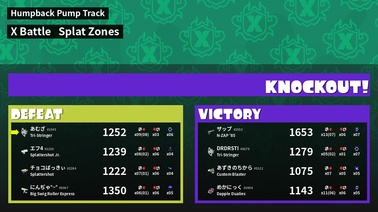 | Mode | Splat Zones - X Battle | ||