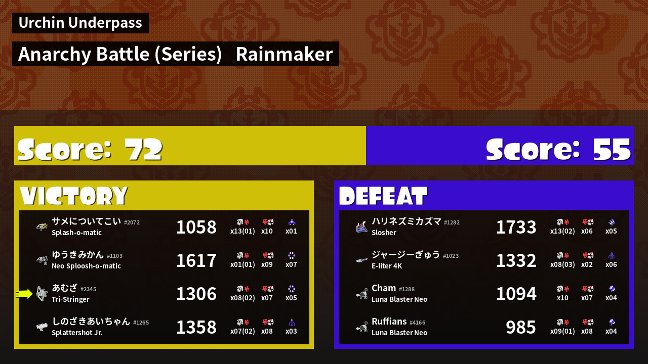 | Medals | #1 Score Booster #1 Splat Assister #1 Rainmaker Stopper | ||