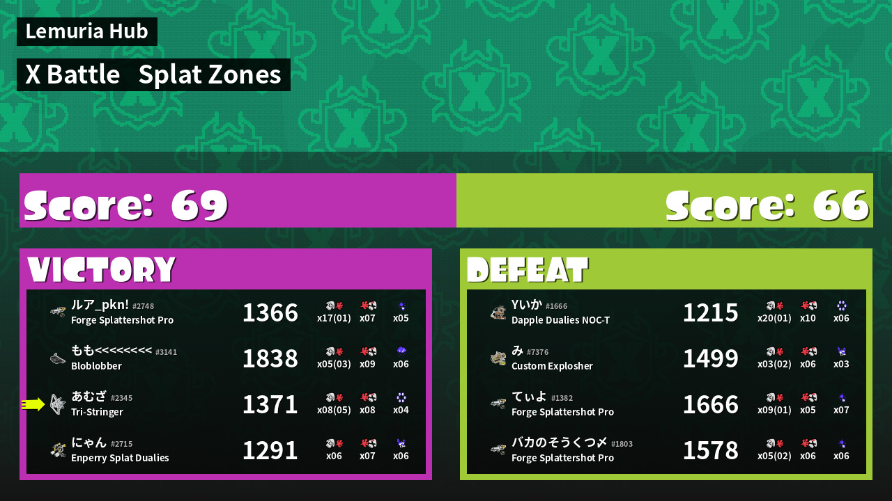 | Medals | #1 Splat Assister #1 Killer Wail 5.1 User #2 Overall Splatter | ||