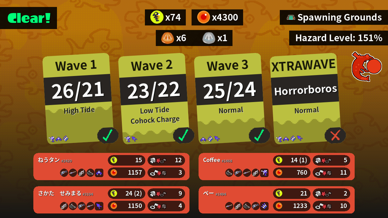 | Weapons | H-3 Nozzlenose Splat Charger Dark Tetra Dualies Bloblobber | Dark Tetra Dualies Bloblobber H-3 Nozzlenose Splat Charger | Splat Charger Dark Tetra Dualies Bloblobber H-3 Nozzlenose | Bloblobber H-3 Nozzlenose Splat Charger Dark Tetra Dualies |