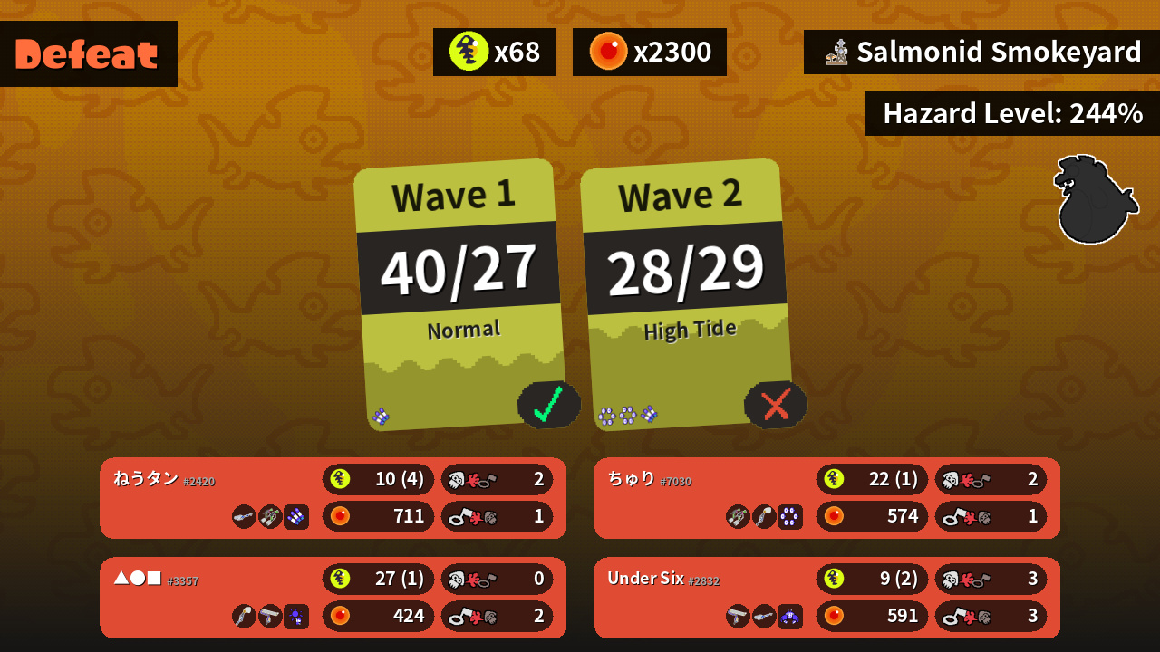 | Boss Salmonid | 15 | 8 | 15 | 7 |