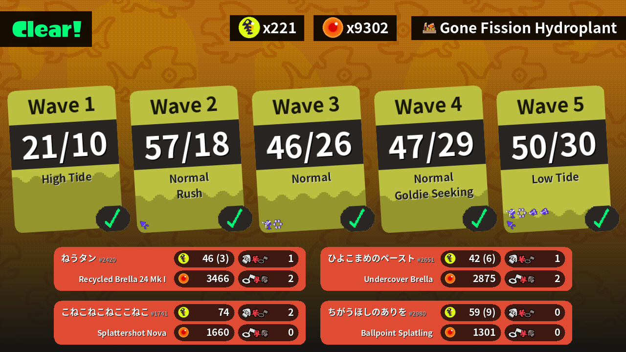 | Weapons | Recycled Brella 24 Mk I | Splattershot Nova | Ballpoint Splatling | Undercover Brella |
