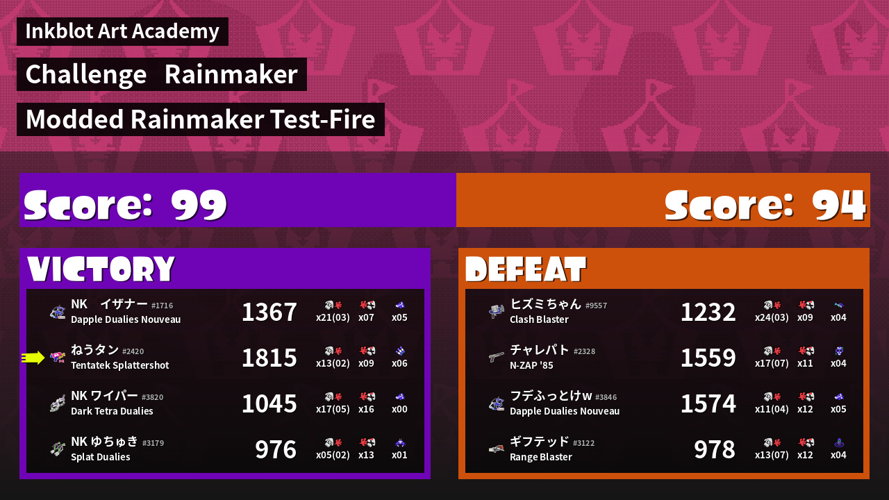 Kills / Deaths | 11 + 2 / 9 > Kill Ratio: 1.22 | ||