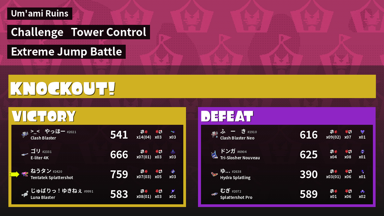 | Weapon | Tentatek Splattershot ( Splat Bomb / Triple Inkstrike) | ||