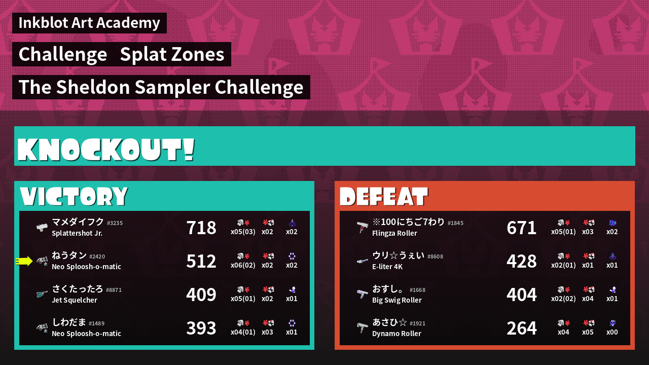 | Medals | #1 Overall Splatter #1 Enemy Splatter #1 Killer Wail 5.1 User | ||