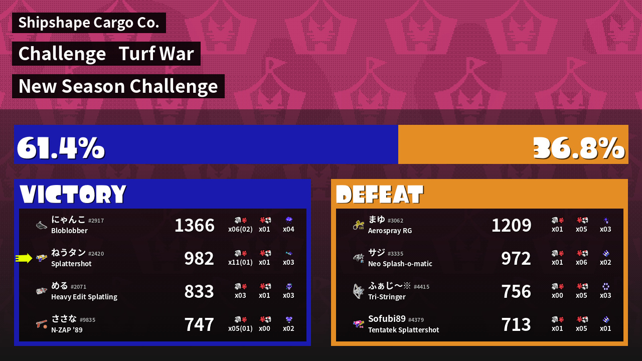 Results of ねうタン's Battle
