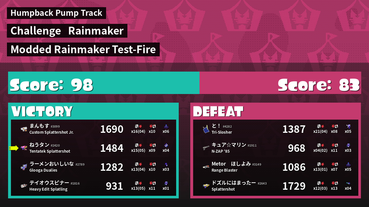 | Medals | Record-Score Setter #1 Super Jump Spot #1 Splat Assister | ||