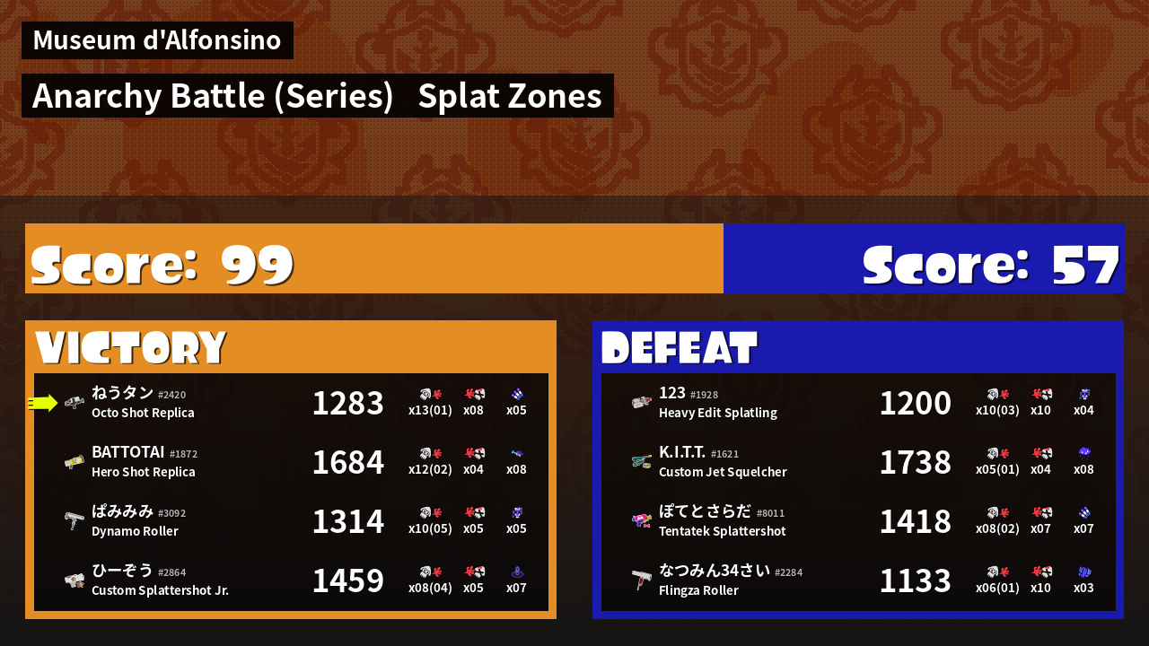 | Mode | Splat Zones - Anarchy Battle (Series) | ||