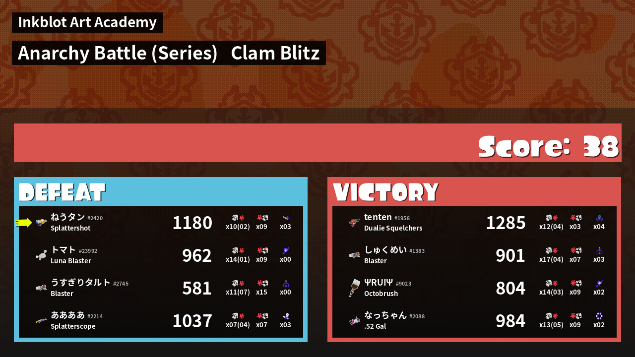 | Mode | Clam Blitz - Anarchy Battle (Series) | ||
