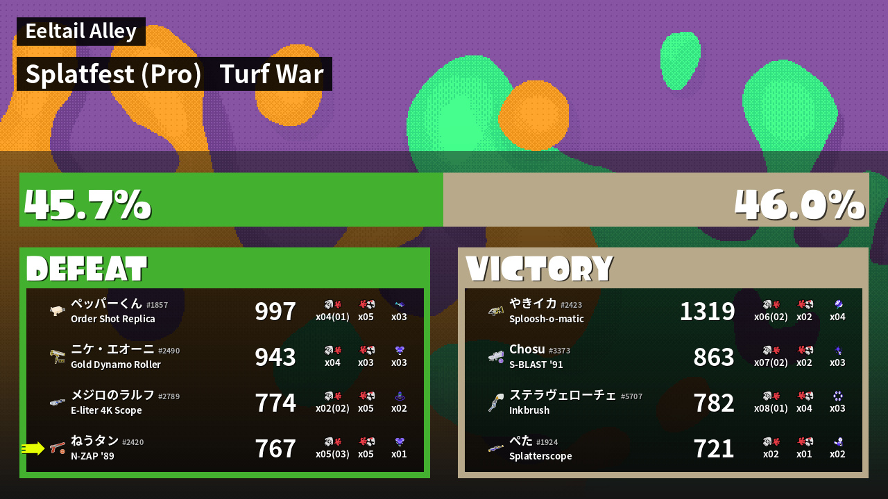 | Medals | #1 Overall Splatter #1 Splat Assister #1 Base Defender | ||