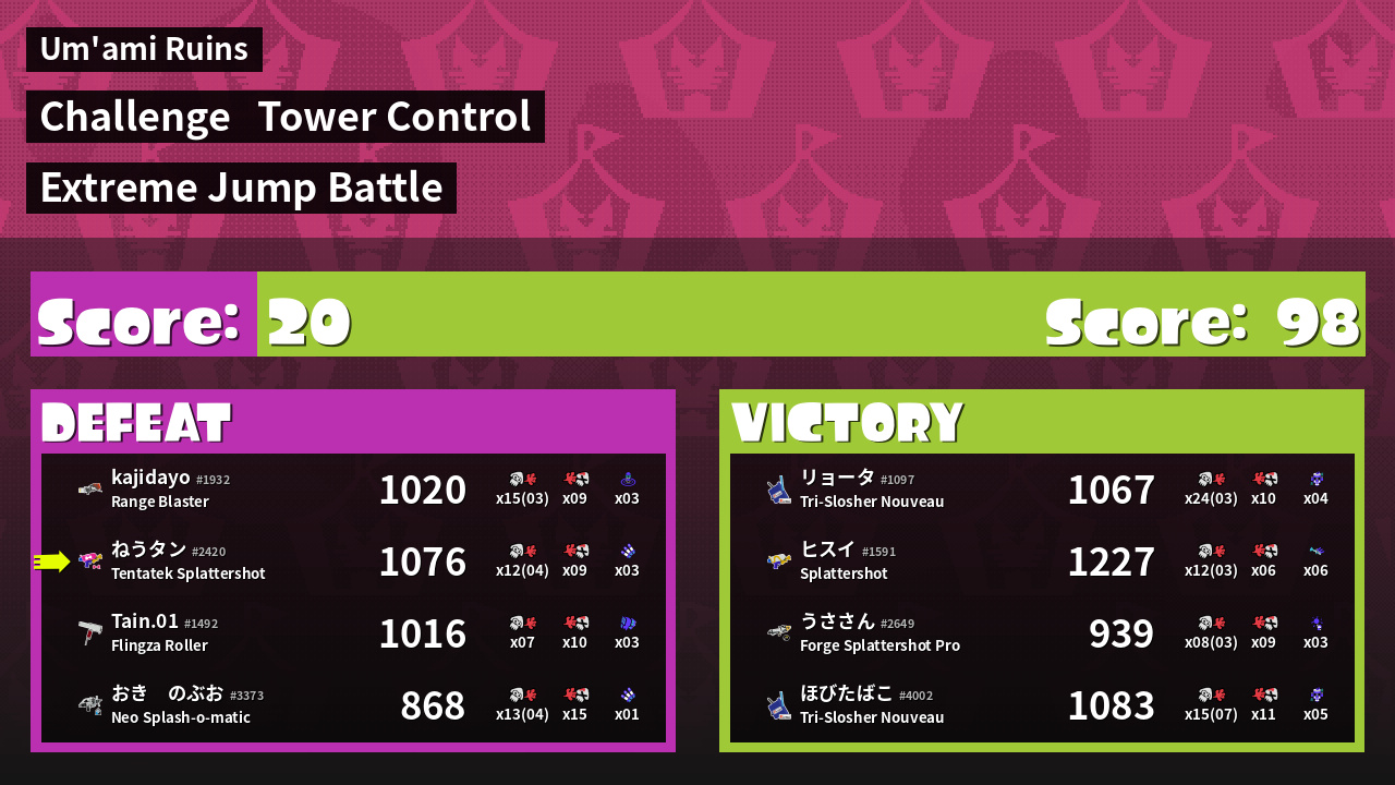 | Medals | #1 Turf Inker #1 Splat Assister #1 Ground Traveler | ||