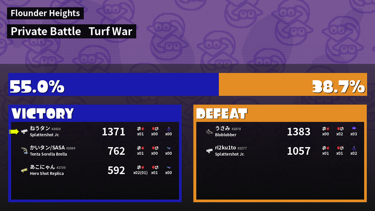 | Mode | Turf War - Private Battle | ||