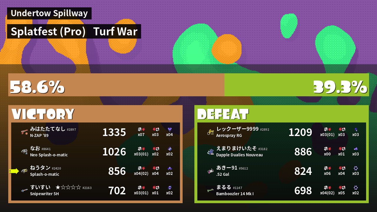 | Medals | #1 Splat Assister #2 Overall Splatter #2 Popular Target | ||