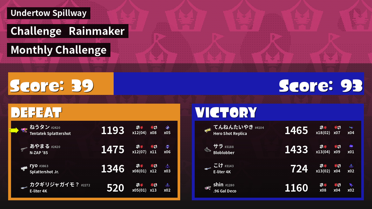 | Medals | #1 Overall Splatter #1 Popular Target #1 Enemy Splatter | ||
