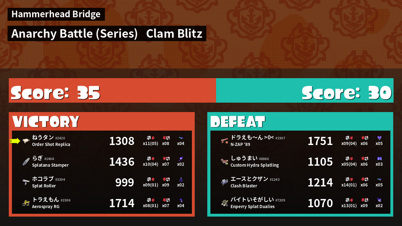 | Mode | Clam Blitz - Anarchy Battle (Series) | ||