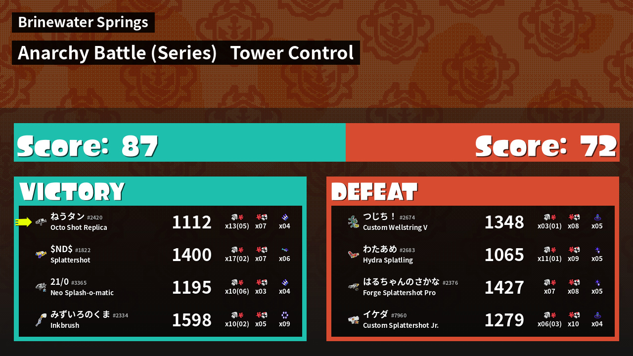 | Mode | Tower Control - Anarchy Battle (Series) | ||