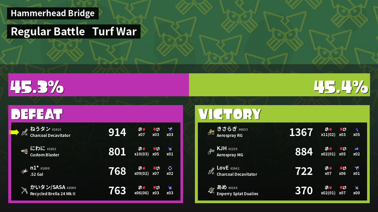 | Weapon | Charcoal Decavitator ( Splash Wall / Inkjet) |