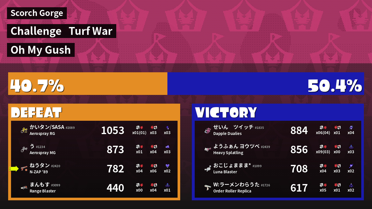 | Medals | #1 Overall Splatter #1 Enemy Splatter First Splat! | ||