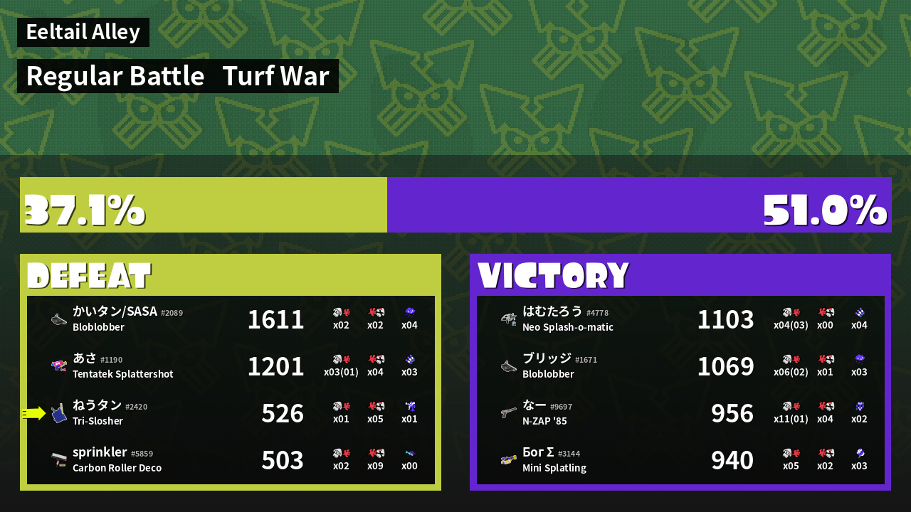 | Mode | Turf War - Regular Battle | ||